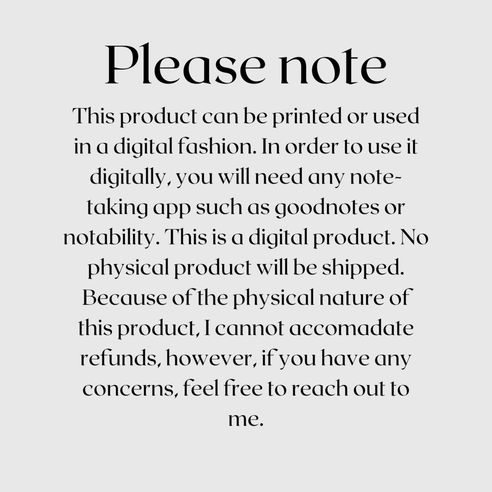 You can annotate this digital planner in any software where you can annotate pdf like Goodnotes, Notability, Noteshelf, Xodo, MyScript Nebo, Squid or others.